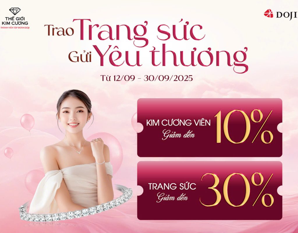 Đón thu về, hãy để trang sức trở thành món quà ý nghĩa, trao gửi trọn vẹn yêu thương và lưu giữ những kỷ niệm đẹp nhất. Từ nay đến hết 30/09/2025, vô vàn ưu đãi đang chờ đón: